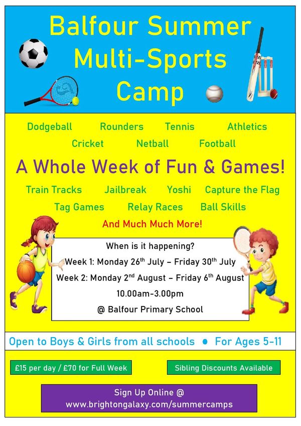 Delivered by teaching staff at Balfour Primary School, this fun-filled fortnight is open to boys and girls from all schools, age 5-11.
